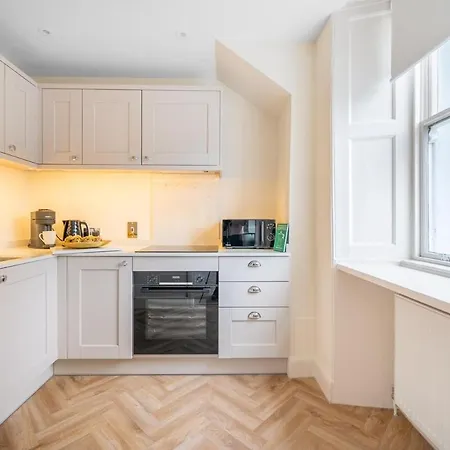 Apartament obejmuje wyposażony aneks kuchenny z czajnikami elektrycznymi, lodówką i piekarnikiem. Tuż za rogiem od do przystanku autobusowego St James's Parade We.